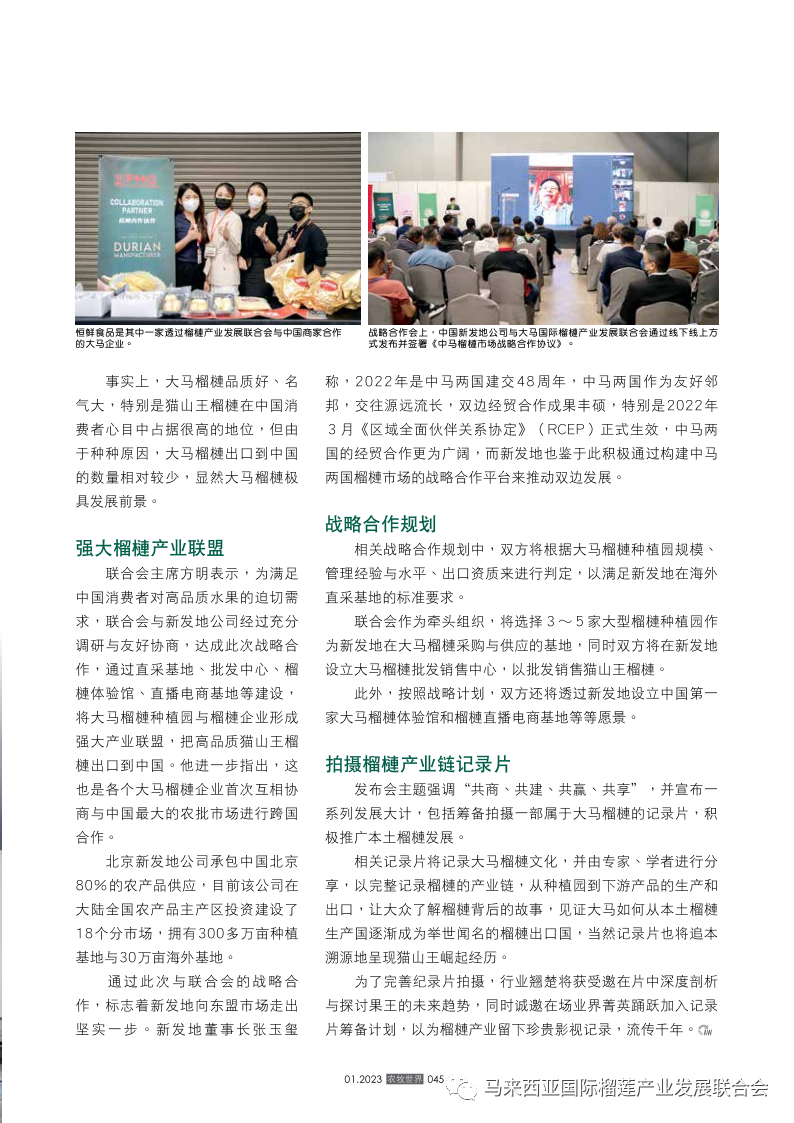 《21世纪》:请简要介绍下马来西亚国际榴莲产业发展联合会所发挥的作用以及未来的重点规划。